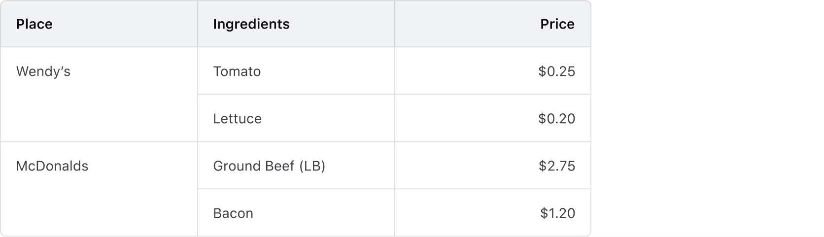 • Multi-span cells should use the same alignment for readability.