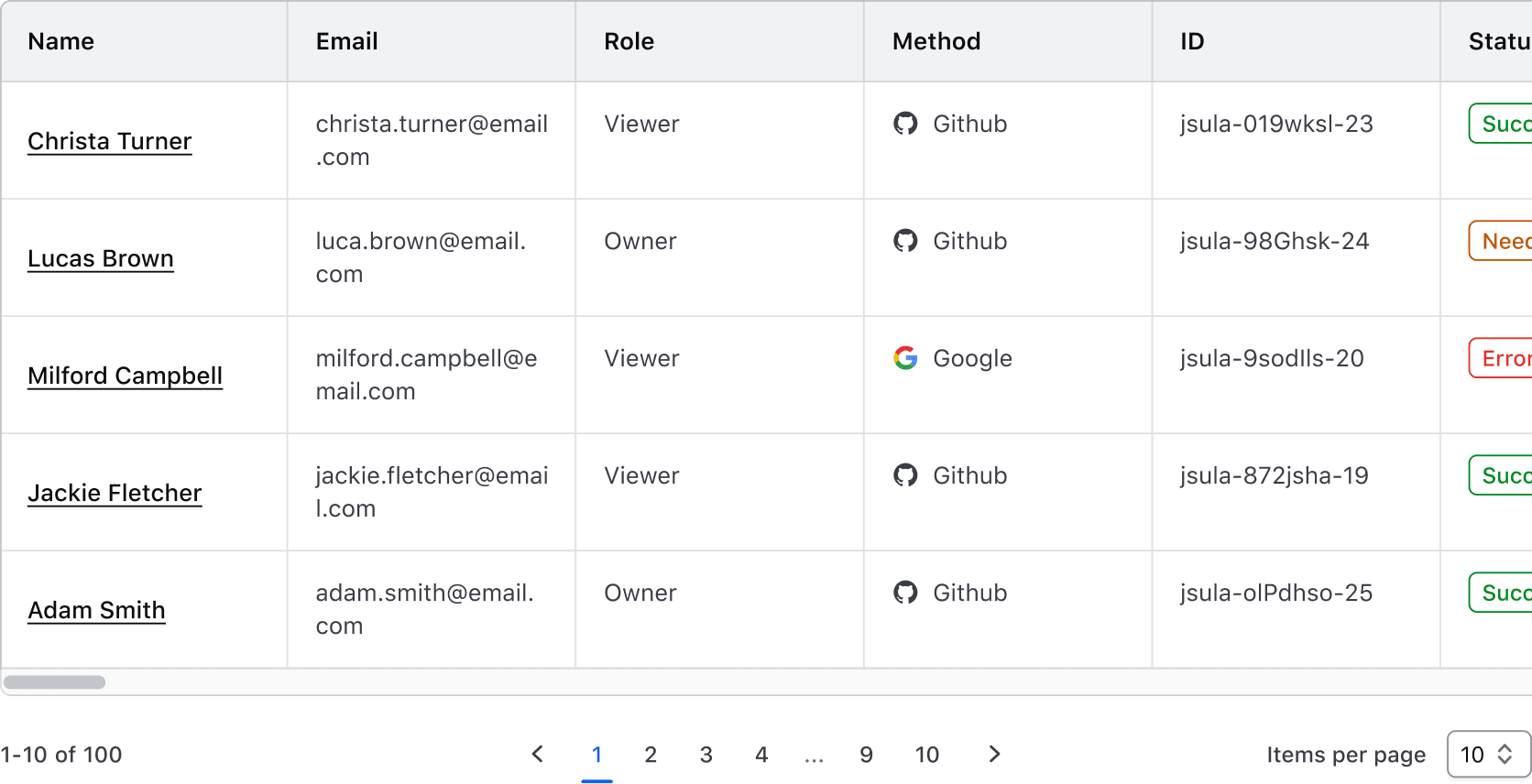 Column with badges that have different length labels end aligned. The badge labels are "Successful", "Needs confirmation", and "Error".